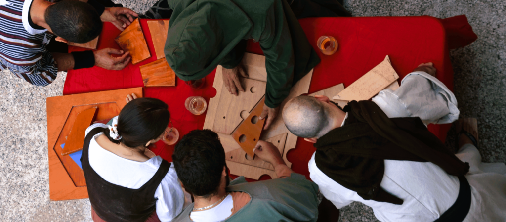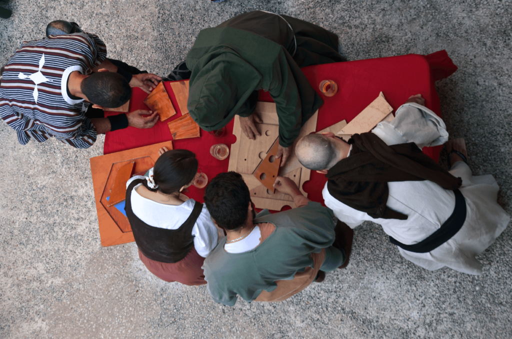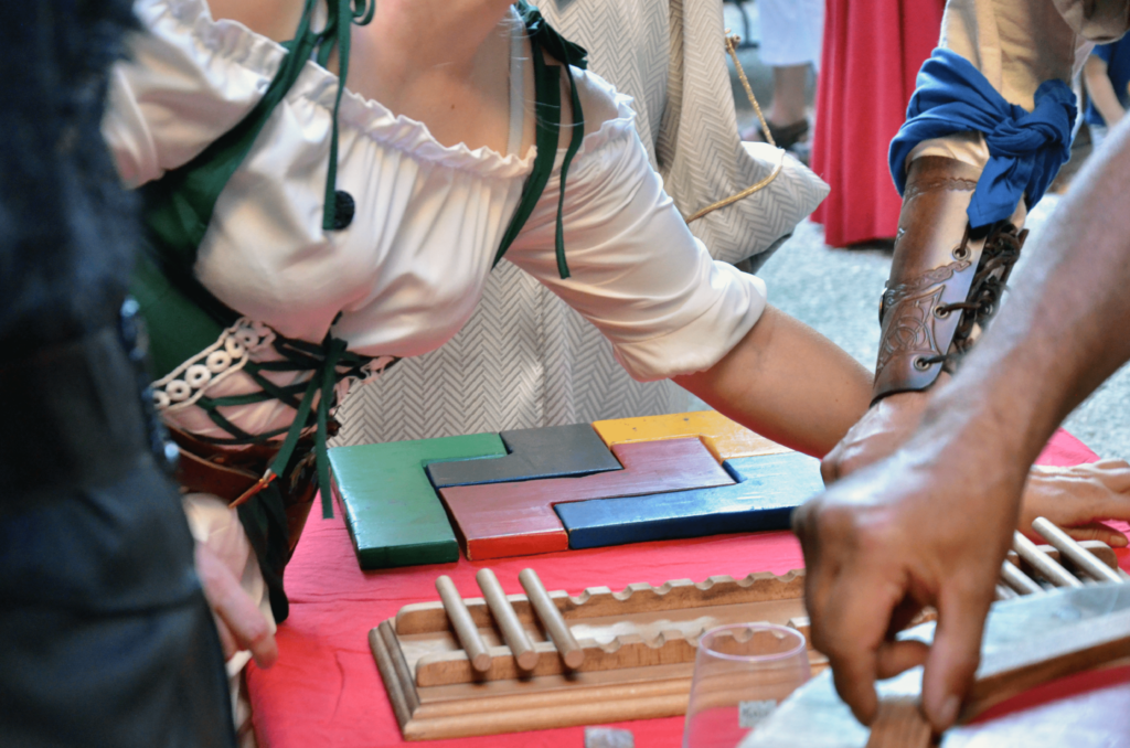 Déplacer les jeux aux joueurs, et non l’inverse, c’est le principe de la MENUISERIE LUDIQUE, permis par la fidèle fourgonnette du duo, débordant de jeux en tout genre, du classique Puissance 4 aux grands jeux d’adresse en bois.